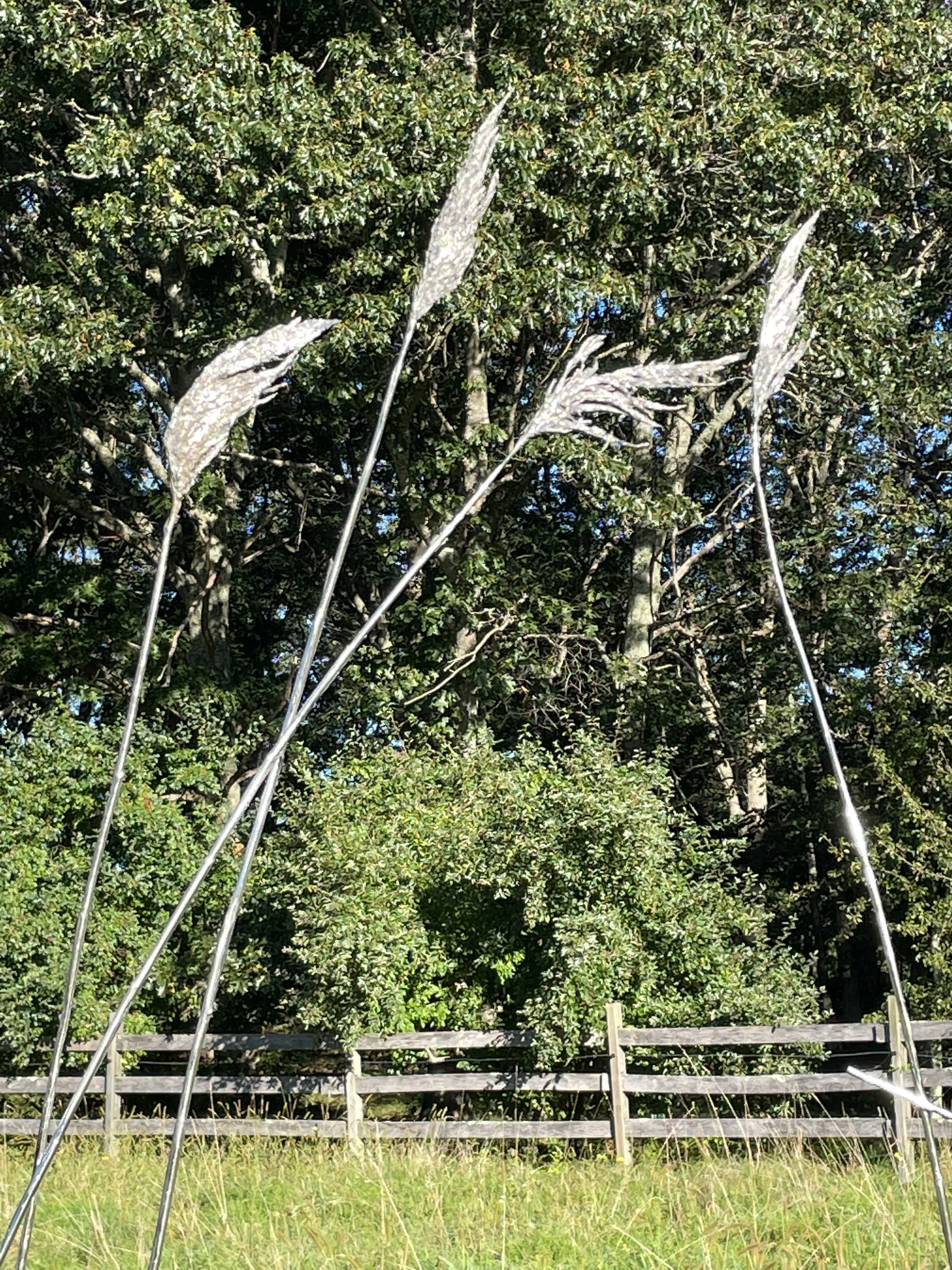 Inspired by the reeds (phragmites) Patterson sees around the coastal northeast, these stainless-steel sculptures were cast from phragmites collected around the artist’s home with the help of the folks at Workshop Art Fabrication.